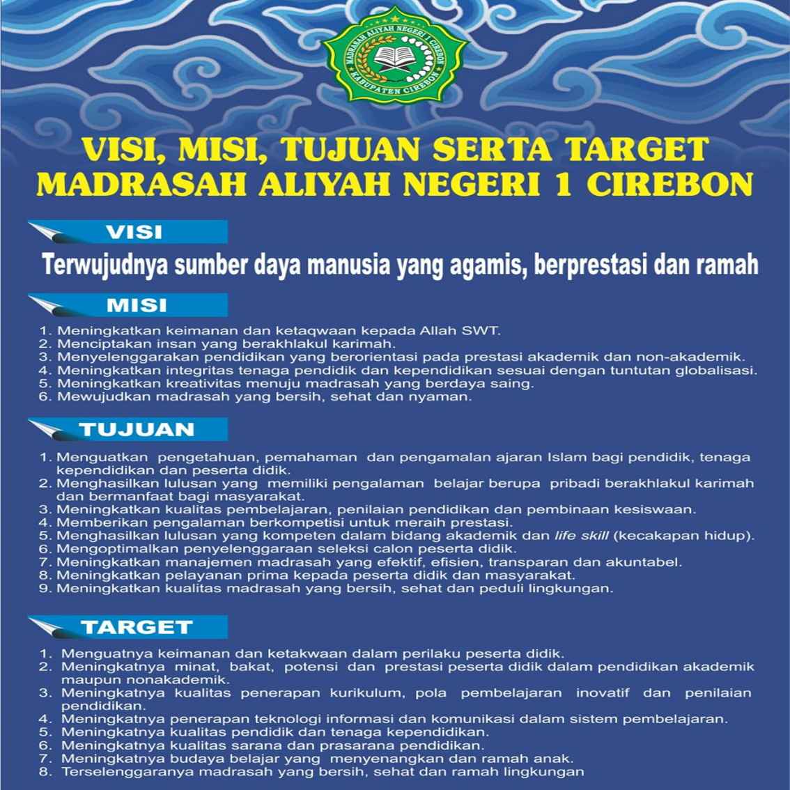Visi, Misi , Tujuan dan Target MAN 1 Cirebon Hubungi MAN 1 Cirebon di Email : man1cirebon@gmail.com
